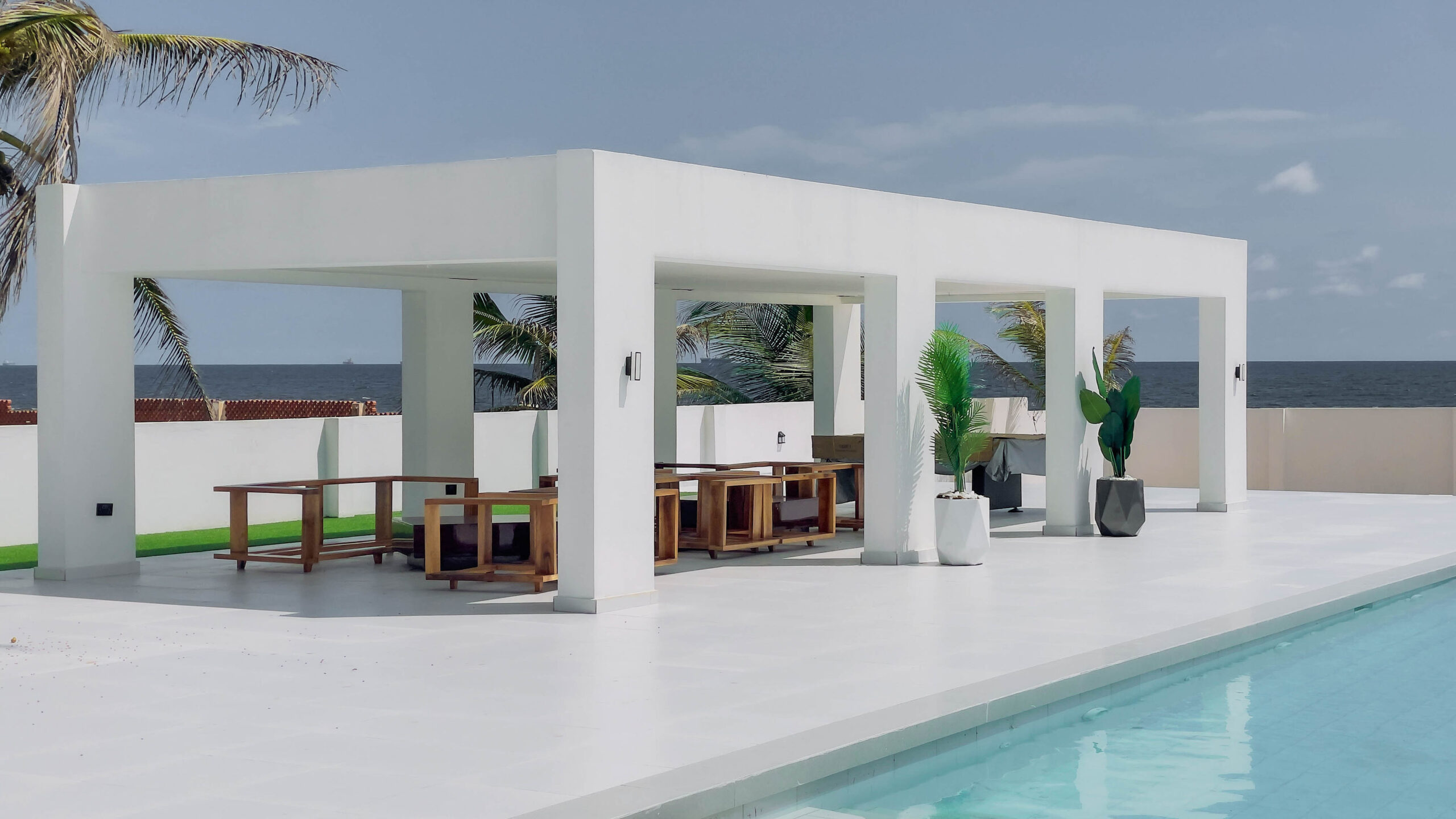 - Amenities: Rooftop Oceanview Terrace, Lounge Area, Smart TVs, DSTV, Cabanas, Inbuilt Sound System, Poolside Lounge Beds, Outdoor Dining Area, See-Through Bathrooms, STARLINK Internet, Table Tennis, Snooker Table, Pool Bar, Pool Fireplace Area, Spacious Living Area, Swimming Pool, 5 Fully Automated Bedrooms, Fully Fitted Kitchen